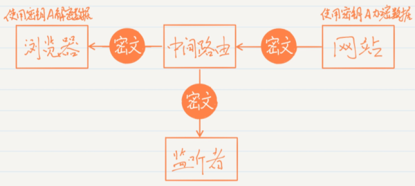 可以看到,由于我们在网络上传输的数据都是密文,所以不怕被监听者获取到,因为他们无法得知原文是什么。而浏览器收到密文之后,只需要使用和网站相同的密钥来对数据进行解密就可以了。
