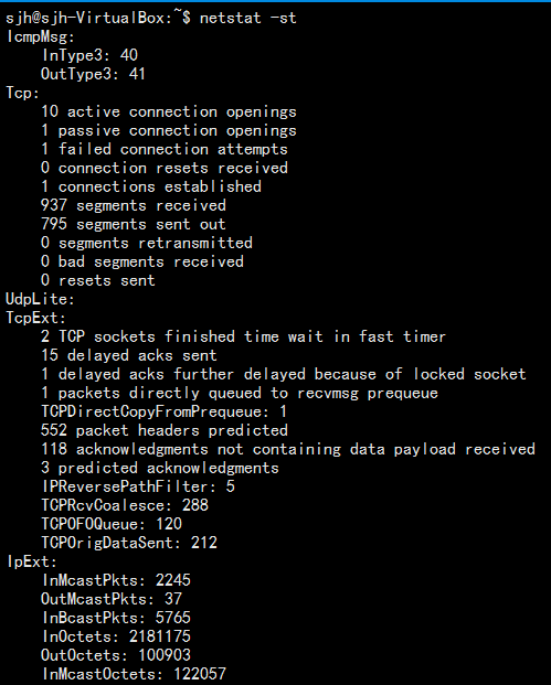 显示 TCP 或 UDP 端口的统计信息 netstat -st 或 -su