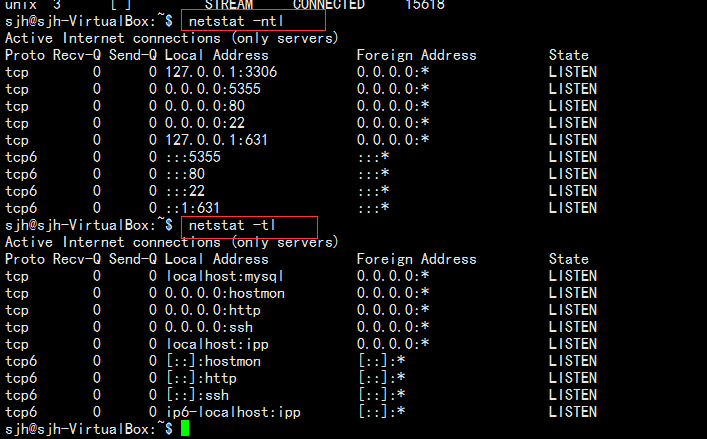 提示:LISTEN和LISTENING的状态只有用-a或者-l才能看到