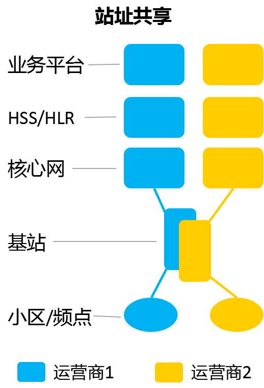 在这种方式下,两个运营商只共享物理站址,包括:机房,铁塔,电源,天馈系统等系统。