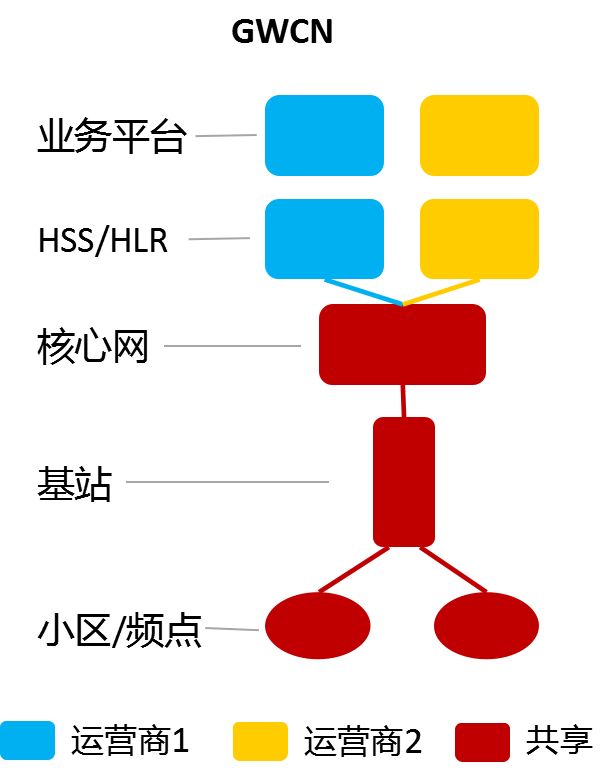对于无线侧来说,GWCN的表现和MOCN一样,都需要考虑基站内部的资源分配和管理问题。对于核心网来说,共享的网元也需要考虑容量的分配,除此之外,作为用户管理的HSS是核心网中的核心,不进行共享,高层的业务平台具体运营商的业务具有差异性,也不进行共享。