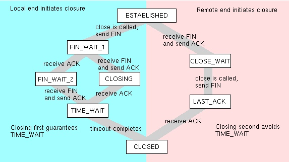 TIME_WAIT状态,一般都会出现在HAProxy、Nginx这种代理机器上,主要是由于频繁的主动关闭所造成的。通过修改reuse和回收参数,可以比较快速的解决问题。