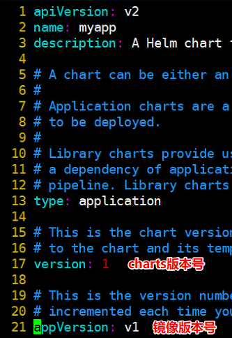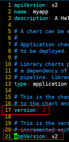 编辑自描述文件 Chart.yaml , 修改version和appVersion信息