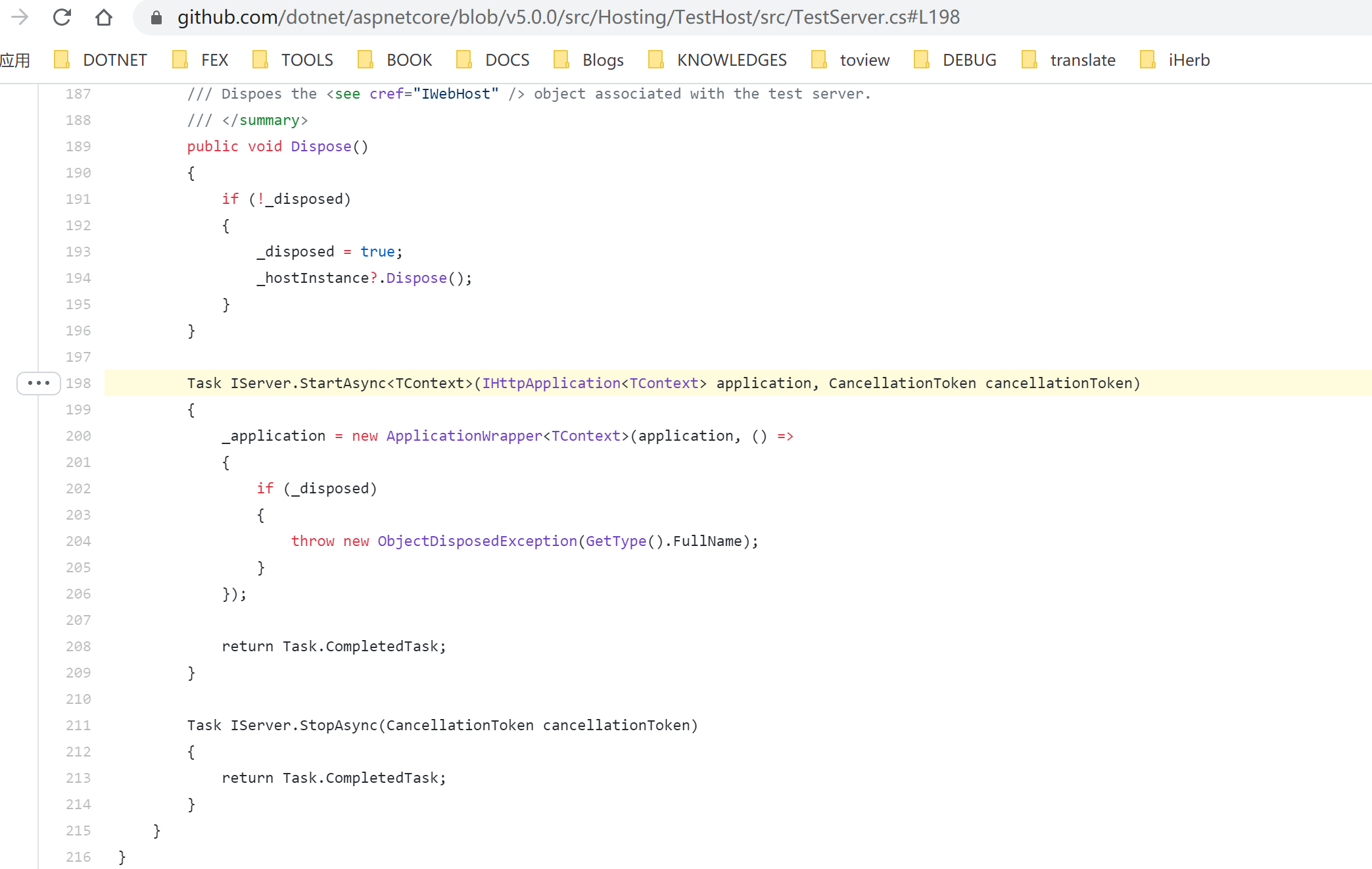 TestServer 在启动的时候并没有监听端口,可以参考源码 IServer 的 Start