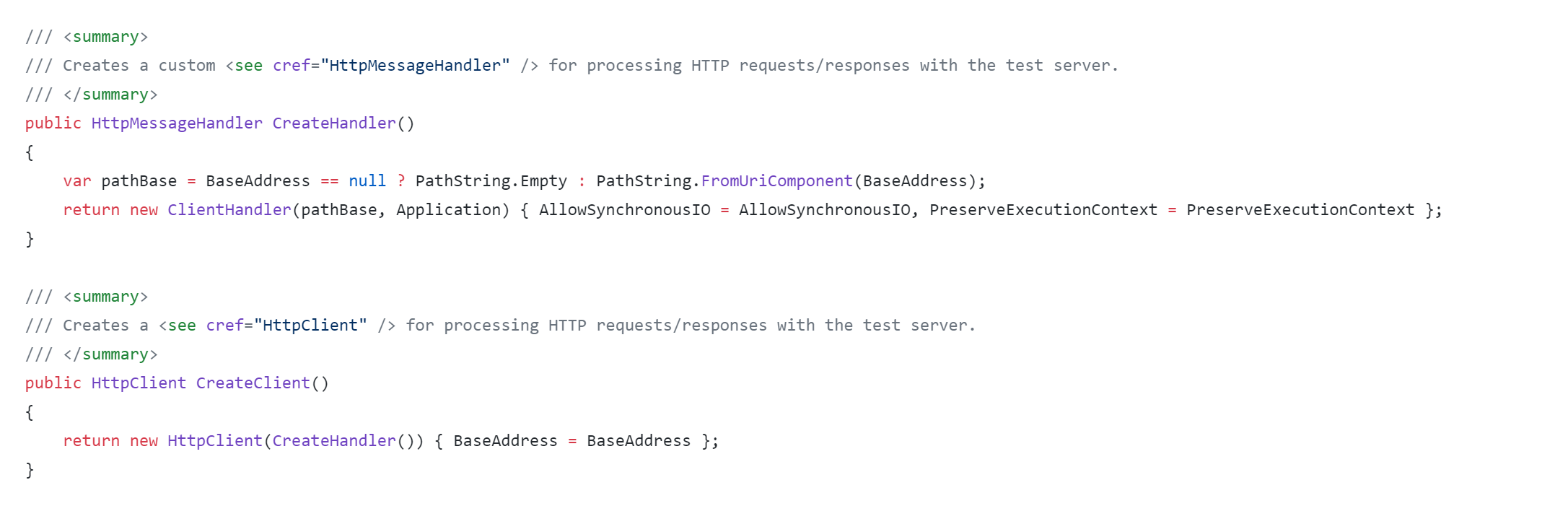 TestServer 通过 CreateClient 方法来创建调用 TestServer 接口的 HttpClient