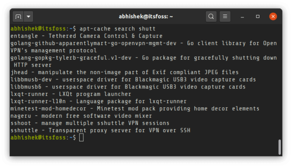 默认情况下,它会在软件包的名称和描述中查找搜索关键词。它按字母顺序显示匹配的软件包及其简短的描述。