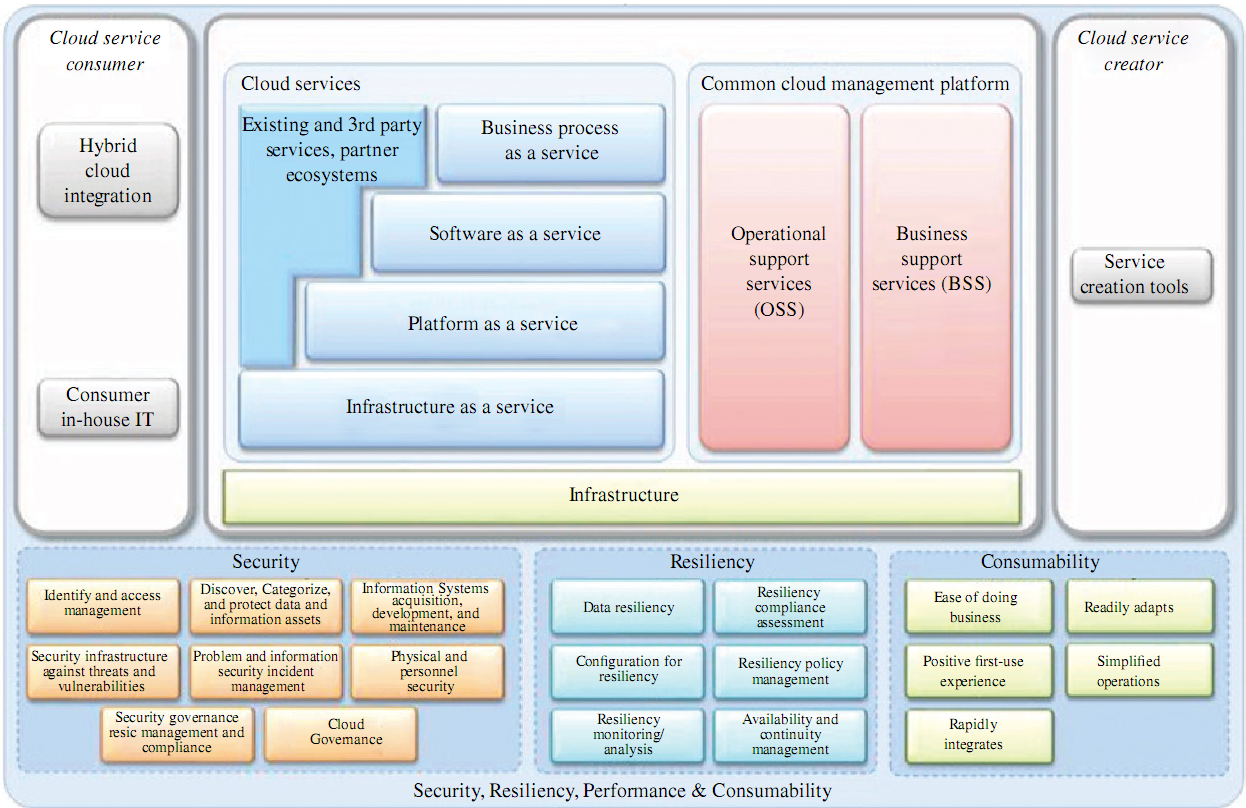 上图阐释如何创建私有和混合云,最终用户可以自行提供计算、 存储和网络。许多大型组织开始创建内部的私有云,来增强其数据中心战略。