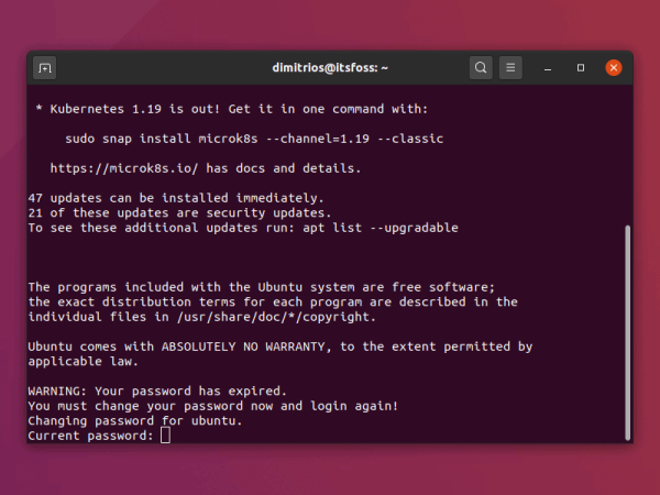 当提示时,用前面提到的 ubuntu 作为密码。当然,你会被要求更改密码。