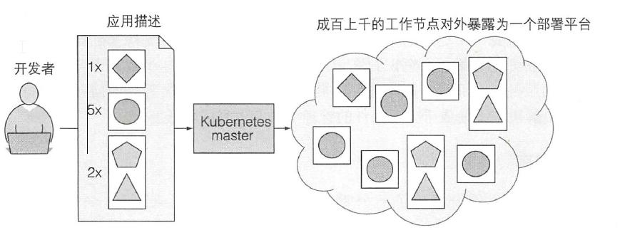Kubemetes 可以被当作集群的一个操作系统来看待,它降低了开发者不得不在他们的应用里实现一些和基础设施相关服务心智负担。他们现在依赖于Kubemetes 来提供这些服务,包括服务发现、扩容、负载均衡、自恢复,甚至领导者的选举。应用程序开发者因此能集中精力实现应用本身的功能而不用浪费时间思索怎样集成应用与基础设施。