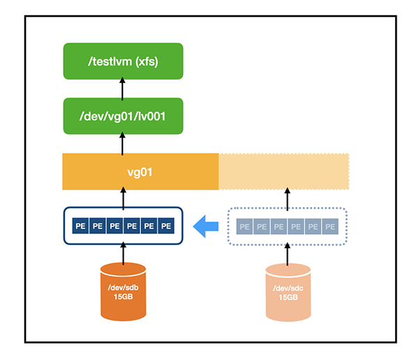 # vgextend vg01 /dev/sdd Volume group "vg01" successfully extended
