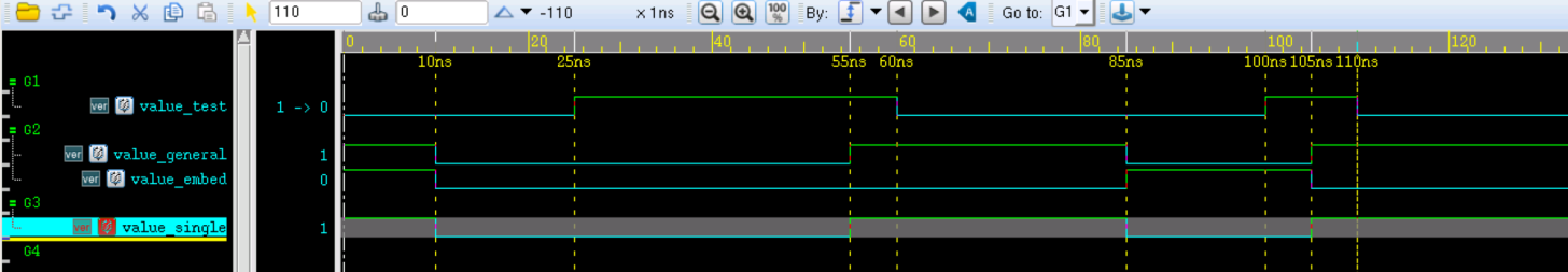 同理,55ns 时,value_test 值为 1,将其赋值给 value_embed 并延迟 30ns 输出。