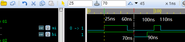 可以看出,2 个 initial 进程语句分别给信号 ai,bi 赋值时,相互间并没有影响。