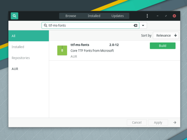 如果你也需要使用微软字体,可以从 AUR 中取得这个 软件包 。如果你想要在命令行中管理 AUR 软件包,可以选择安装一个 AUR 助手 。