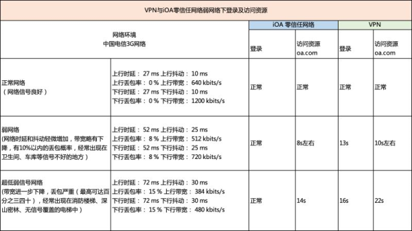 图 2 虚拟专用网络与零信任网络在弱网络下登录及访问资源情况