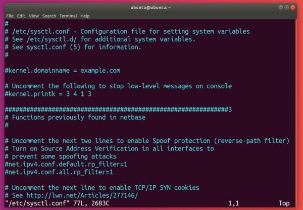 一种让选项持续生效的方式是修改文件 /etc/sysctl.conf,在这里我用 vim 来编辑文件,不过你可以使用任何你想使用的编辑器,以及请确保你拥有管理员权限(用 sudo):