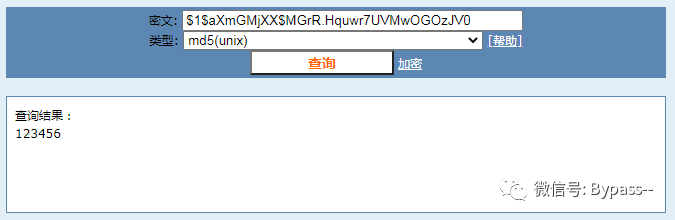 密码域密文由三部分组成,即:$idsalt$encrypted。当id=1,采用md5进行加密,弱口令容易被破解。