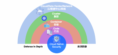 对于这里安全模型的每一层,都是单向依赖于外层的。也就是说,外层的云、集群、容器安全如果做得好,代码层的安全就可以受益,而反过来,我们是无法通过提高代码层的安全性来弥补外层中存在的安全漏洞或问题。基于上述这一点原理,我们的纵深防御策略是「自外而内」地进行“设防”。