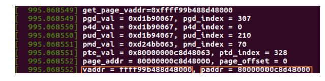 可以看出虚拟地址ffff99b488d48000对应的物理地址是80000000c8d48000。这个过程也是mmu的过程。