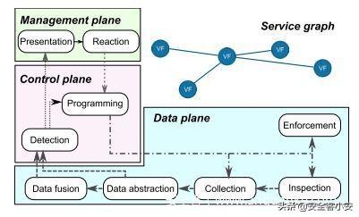 ? 控制平面是逻辑上和集中式算法的集合,用于检测攻击和识别新威胁。 每种算法都从公共数据平面检索所需的数据。 这代表了所提出的框架背后的一项主要创新:的确,每种算法都对整个系统具有完全的可见性,而无需在每个虚拟功能中部署本地代理,这些代理通常执行相同或类似的检查操作。 控制平面还应包括编程功能,以将本地处理任务配置和卸载到数据平面,从而有效地平衡检查深度与所产生的开销。