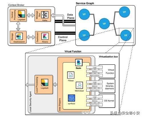 数据平面是虚拟化环境中部署的体系结构的唯一部分。 它收集安全上下文,即包括事件,日志,措施的知识库,可用于检测已知攻击或识别新威胁。