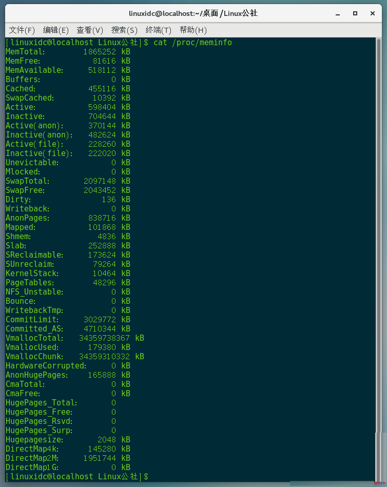 [root@linuxprobe ~]$ cat /proc/meminfo