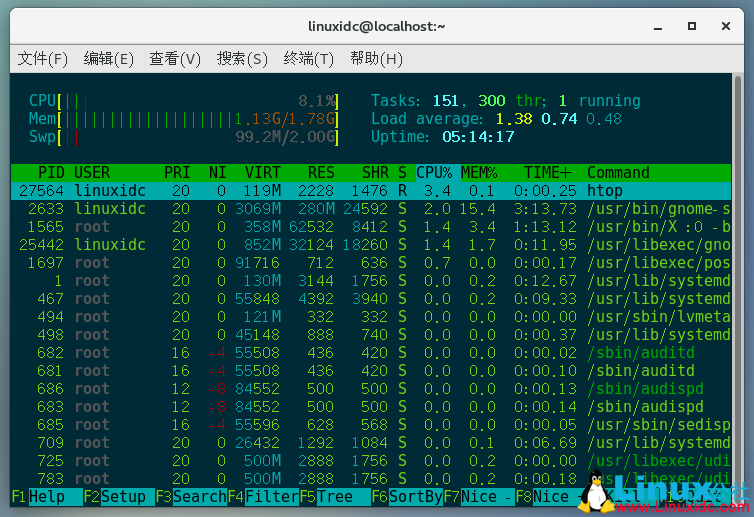就像top命令一样,htop命令也会详细分析您的CPU和内存使用情况。 如果您的系统上没有安装htop,Ubuntu下可以先通过以下命令更新abt存储库来安装它: