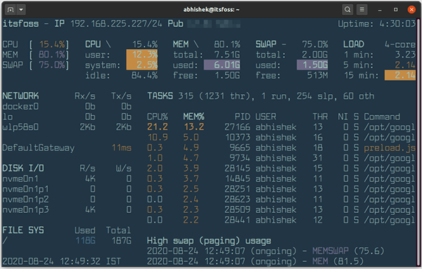 Glances?是一个系统监控工具,它把这些都联系在一起,并提供了更多的功能。我最喜欢的是,你可以在远程 Linux 服务器上运行 Glances 来监控本地系统的系统资源,也可以通过 Web 浏览器监控。