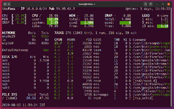 你也可以通过 SSH 进入任何一台电脑,然后启动 Glances,它可以完美地工作。更多关于客户端-服务器模式的信息请看这里。