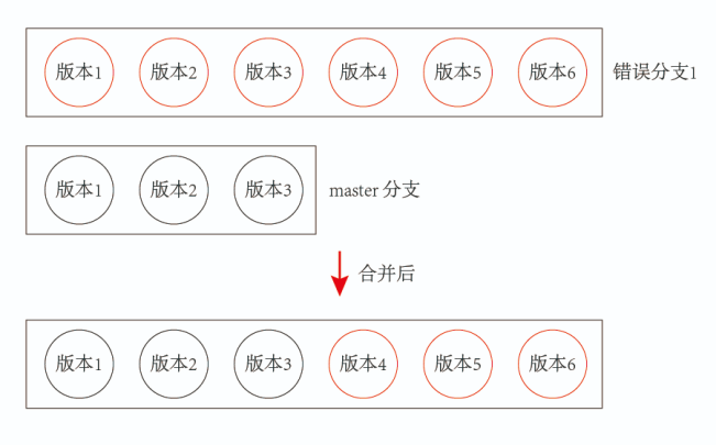 这种情况下,就不能简单使用 git reset 命令了。这就是良许这次碰到的问题。为了解决这个问题,我们就需要找出合并后的分支与合并前的分支的差异,再进行版本回退。这种情况下的版本回退,就不能单用 git reset 了,而是要配合 git revert 了,在后面我们将详细介绍如何优雅的进行版本回退。
