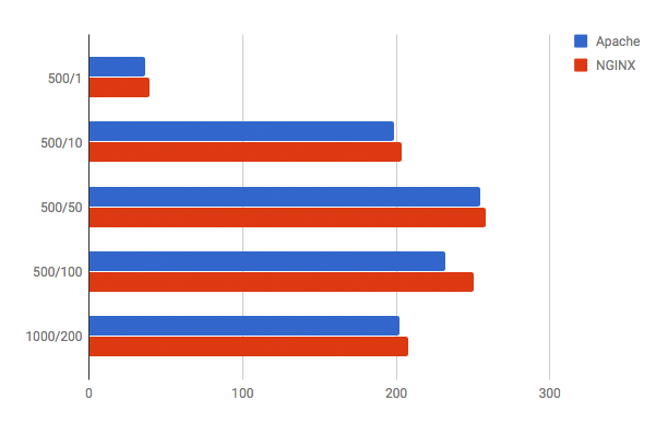 这个小图像显示的是静态内容请求,以秒处理。Nginx 显然在这里超过了Apache!