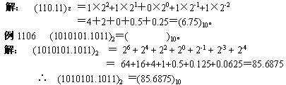 | 导读 | 由二进制数转换成十进制数的基本做法是,把二进制数首先写成加权系数展开式,然后按十进制加法规则求和。这种做法称为"按权相加"法。 |