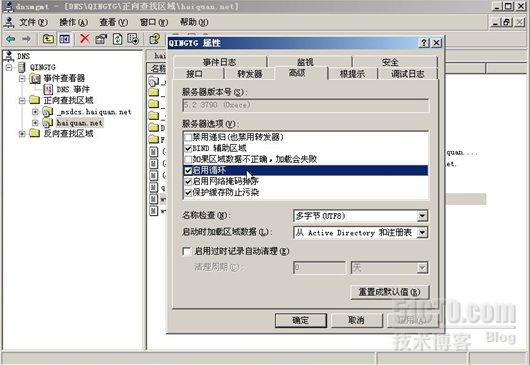 然后在DNS主机QINGYG上点击右键选择属性,在出现的对话框中勾选"启用循环",如图: