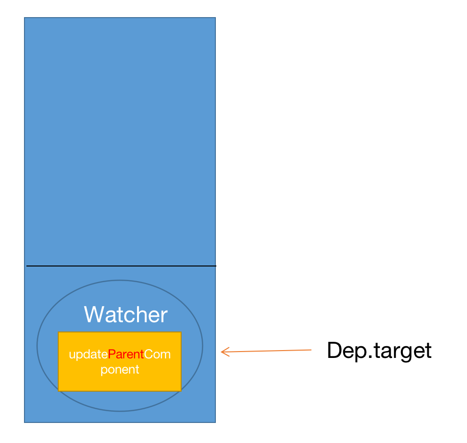 将 Dep.target 赋值为保存了 updateParentComponent 函数的 Watcher 。