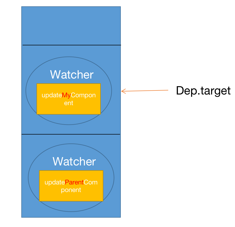// data.text 的 Dep 收集当前 Watcher (保存了 `updateMyComponent` 函数)