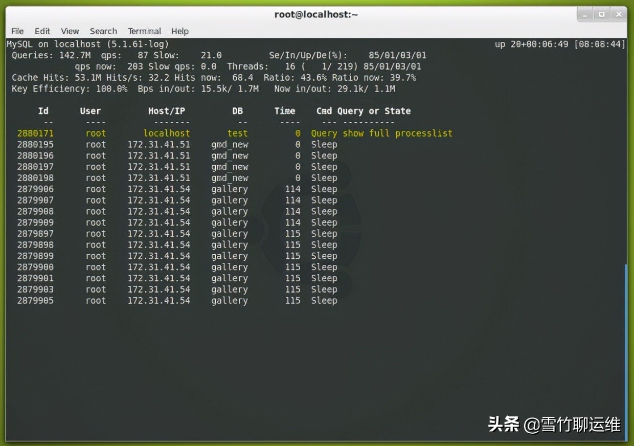 监控mysql性能的工具有很多,好的工具是诊断myql性能瓶颈和排除服务器的利器。日常工作我们常常用到工具如zabbix(借助脚本或插件),Prometheus(本人工作中常用)、MONyog等。但在一些特殊情况下,这它们并不总是完美满足mysql开发人员或管理员的常见需求,或者在某些情况一下可能无法正常工作。令人兴奋的是mysql社区创建了各种开源工具来填补这些空白。今天分享4个命令行工具来监控Linux中mysql数据库正常运行时间、负载和性能。