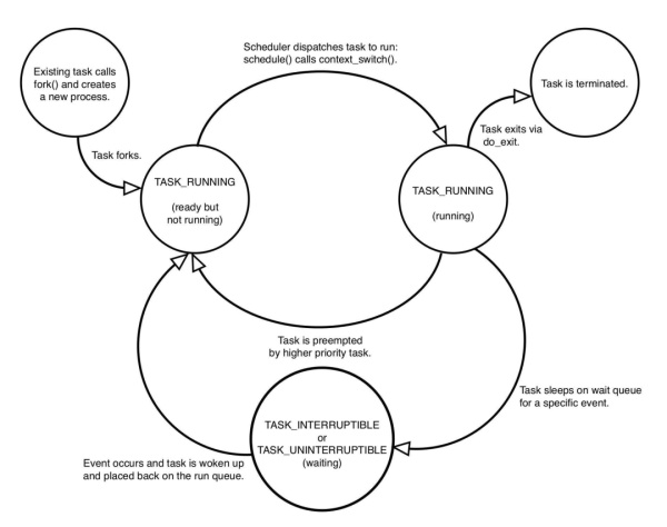 - volatile long state:-1是不运行的,=0是运行状态,>0是停止状态。下面是几个比较重要的进程状态以及它们之间的转换流程。