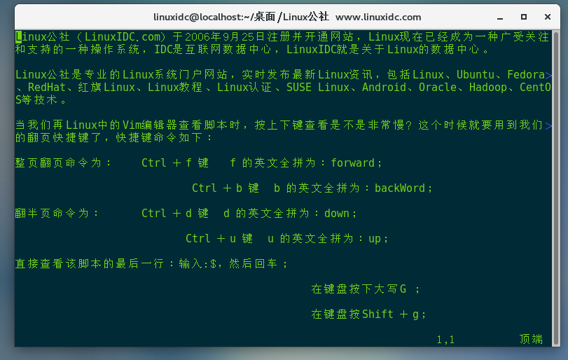 | 导读 | 当我们再Linux中的Vim编辑器查看脚本时,按上下键查看是不是非常慢?这个时候就要用到我们的翻页快捷键了。 |