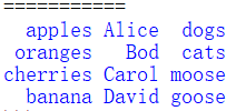 tableData = [[‘apple',‘orange',‘cherry',‘banana'], [‘Alice',‘Bob',‘Cathy',‘David'], [‘dog',‘cat',‘bird',‘duck']]