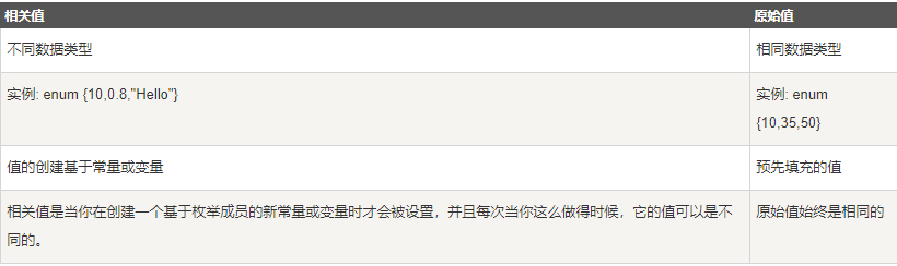 枚举可分为相关值与原始值。