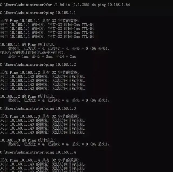 那么这段“for /L %D in(1,1,255) do ping 10.168.1.%D” 代码是什么意思呢?