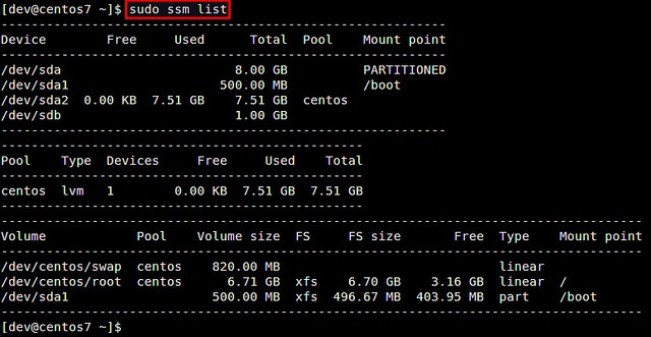 不过对CentOS/RHEL用户们来说有个好消息。最新版本的CentOS/RHEL 7现在随带系统存储管理器(又叫ssm),这是一种统一的命令行界面,由红帽公司开发,用于管理各种各样的存储设备。目前,有三种可供ssm使用的卷管理后端:LVM、Btrfs和Crypt。