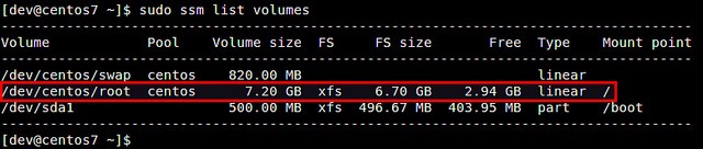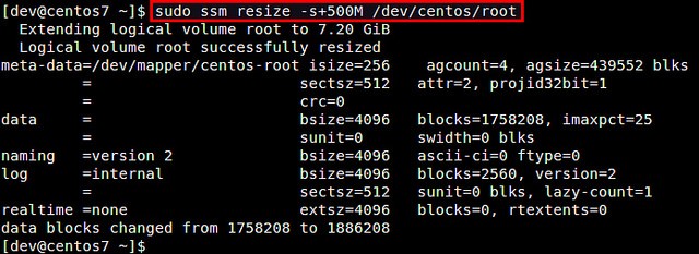 $?sudo?ssm?resize?-s+500M?/dev/centos/root