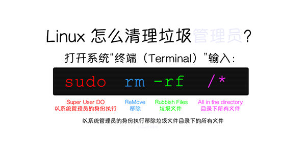 感觉很有道理啊,你看rm 是删除,这个单词简单好记;连 rf 都给出了解释,“垃圾文件”;/* 代表目录下的所有文件,没毛病;sudo 也有了,确保权限没问题。