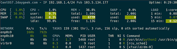 你可以在一个地方查看所有信息,比如:CPU 使用情况、内存使用情况、正在运行的进程、网络接口、磁盘 I/O、RAID、传感器、文件系统信息、Docker、系统信息、运行时间等等。