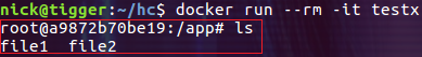 重新构建镜像 testx,运行一个容器并查看 /app 目录下的内容: