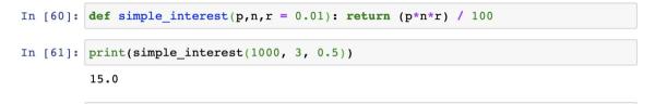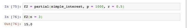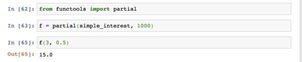 您可以使用函数执行的其他操作是创建Partial函数。 这些是什么? 假设我们有一个计算单利的函数。 我们可以为某些参数设置默认值(从右到左)。