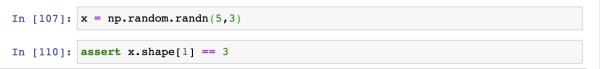 测试驱动的开发意味着您编写测试,然后编写代码以通过这些测试。 您可以使用assert在Python中编写小型测试。 例如,您可能要确保某个对象的形状符合您的期望。