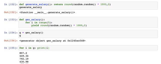 我们可以在Python中使用yield关键字而不是return关键字来创建生成器。 使用生成器的优点是可以即时生成事物并忘记它们。 这样可以节省内存。