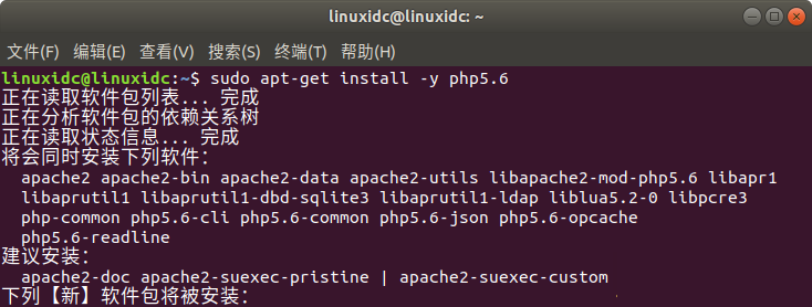 现在,使用apt命令安装PHP 5.6/PHP 7.0。