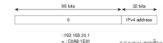 IPv4-compatible IPv6 address: 兼容 IPv4 的地址